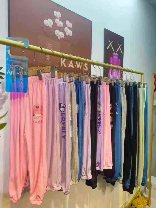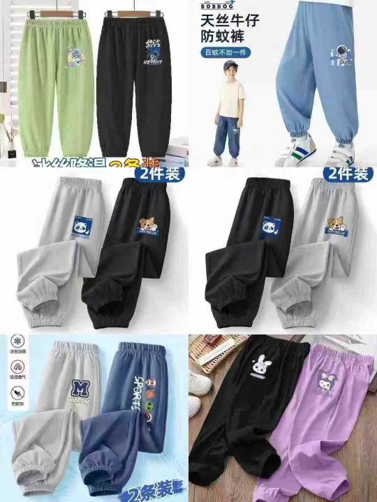 580件男女中大童薄款夏季休闲彩色防蚊裤束脚长裤,冰丝螺纹面料 高弹力,很多图案,码数110-170 货品干净防水袋装。。 货号:1303