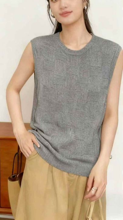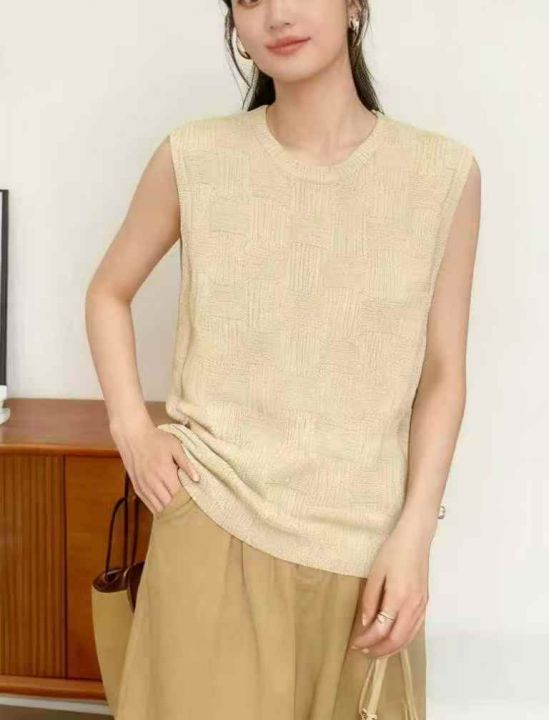 秋冬新款宽松慵懒风暗花设计款叠穿圆领包芯纱毛衣马甲...