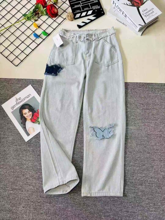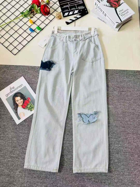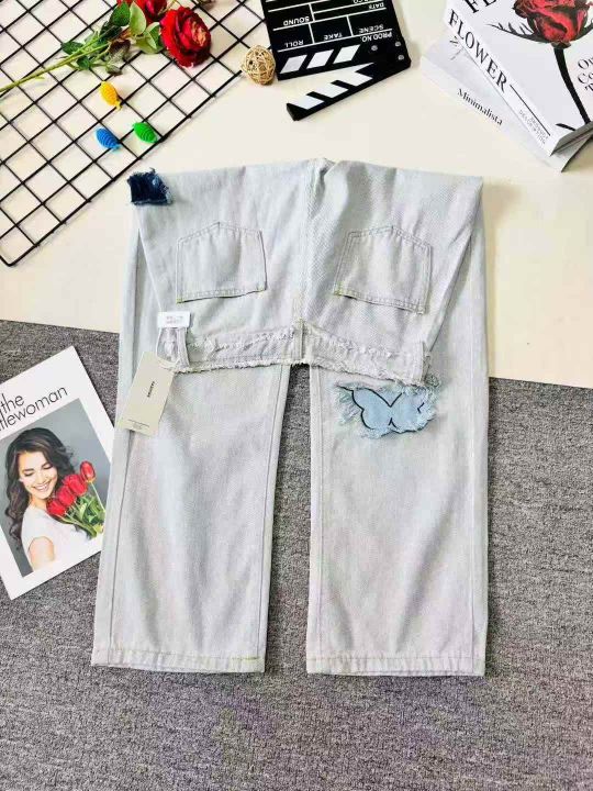 天猫精选1800条 时尚洋气国潮蓝色蝴蝶刺绣毛边阔腿牛仔裤女,单款单色S~XL码,码数比例很平均,品质很好,独立包装带吊牌,全清10.8元分货加一[烟花][烟花][烟花]。 货号:1303