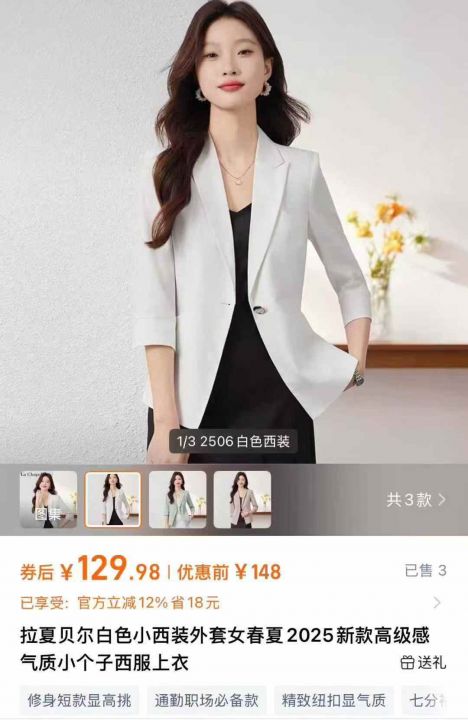 天猫精选200件 天猫在售款 春夏高级感气质小个子西服外套上衣,整款三色,内衬都有包边,做工精细,有肩垫,高品质可入实体店 精美独立包装 S~4XL码 全清13.8元[烟花][烟花][烟花]。 货号:1303