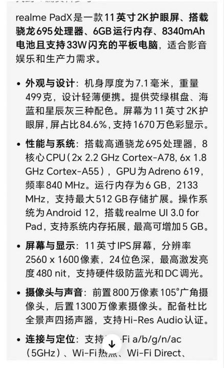 oppo公司品牌,realme真我11寸平板X,国际版单机,Wi-...