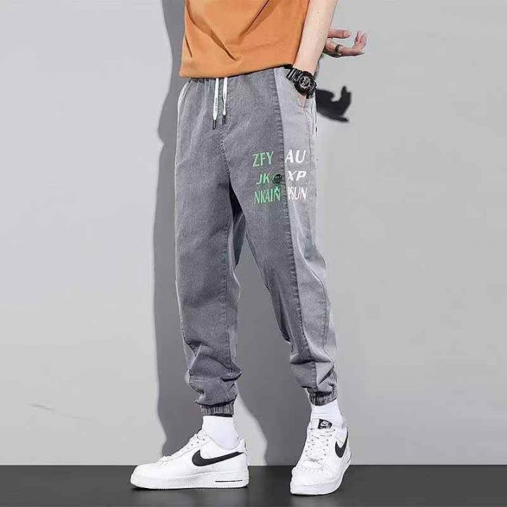 秋季新品复古网红男士大码松紧腰牛仔裤,独立包装带吊...