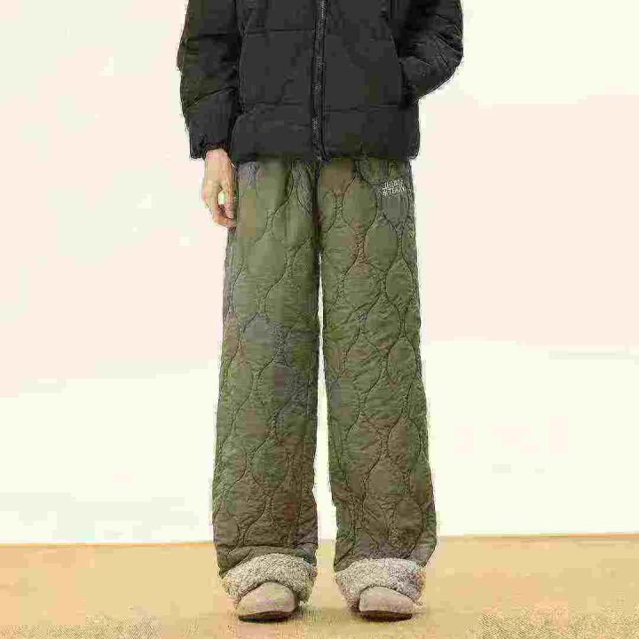防寒休闲羊羔保暖裤男女冬季潮宽松葫芦纹防水直筒裤加...
