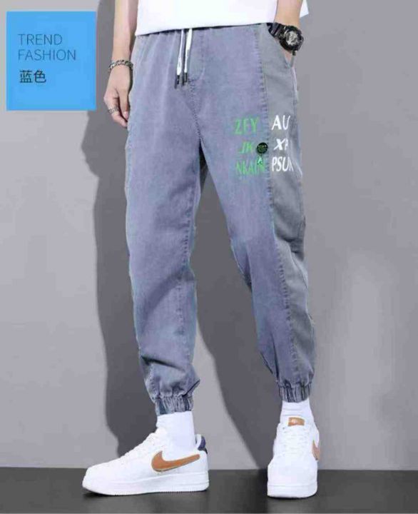 秋季新品复古网红男士大码松紧腰牛仔裤,独立包装带吊...