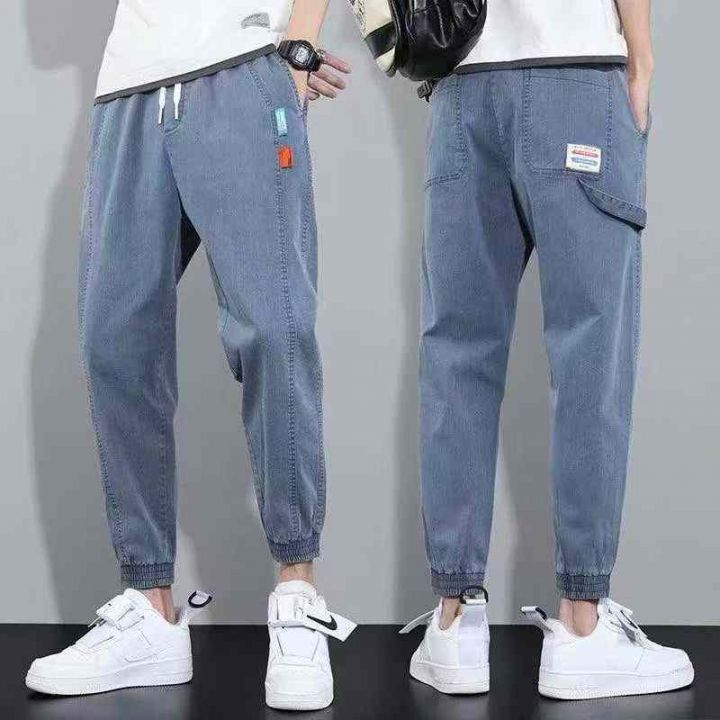 秋季新品复古网红男士大码松紧腰牛仔裤,独立包装带吊...
