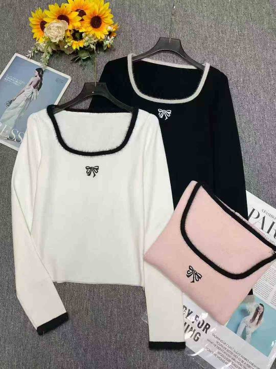 早秋新款小香风撞色刺绣减龄百搭拼接水貂毛设计款套头毛衣,独立包装,黑白色为主,均码面料软糯舒适弹力大,900件,全清6.9元超低价秒杀!分货加一!。 货号:1323