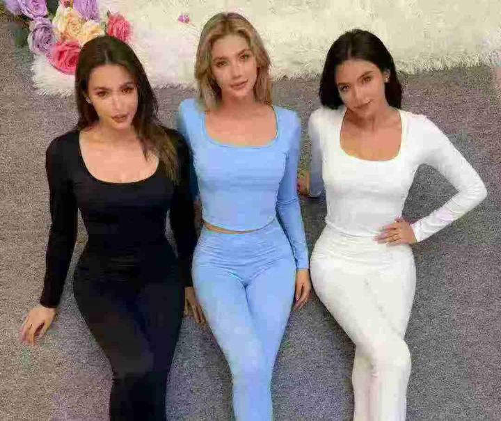 5851件,女早秋季纯色百搭U领长袖T恤上衣女弹力修身高腰显瘦打底衫,一包3件3个色包装,码数XL-4XL,全清3.8元,分货➕1