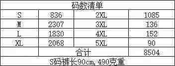 8504件加婴儿绒雪尼尔裤,抽绳收腰设计,显瘦显高,内里包边,有弹力。面料挺阔有型,垂顺有质感。用料,做工,款式,颜色都无可挑剔,码数清单看下图。独立包装带吊牌。100件一份起12.5