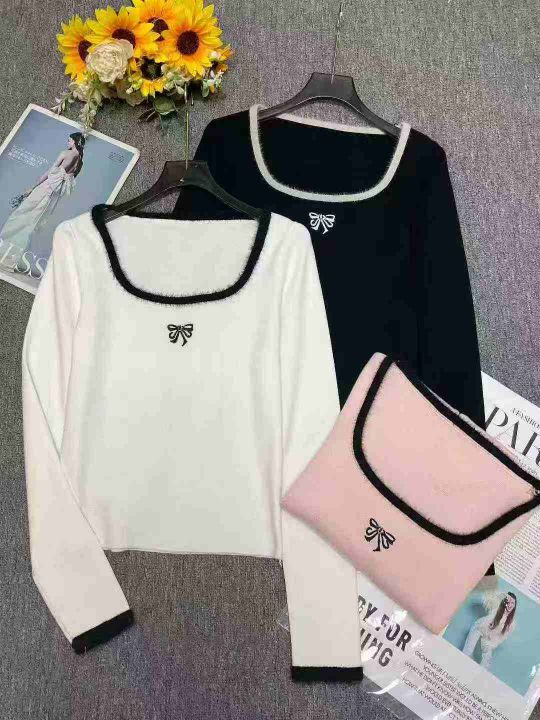 早秋新款小香风撞色刺绣减龄百搭拼接水貂毛设计款套头毛衣,独立包装,黑白色为主,均码面料软糯舒适弹力大,900件,全清6.9元超低价秒杀!分货加一!