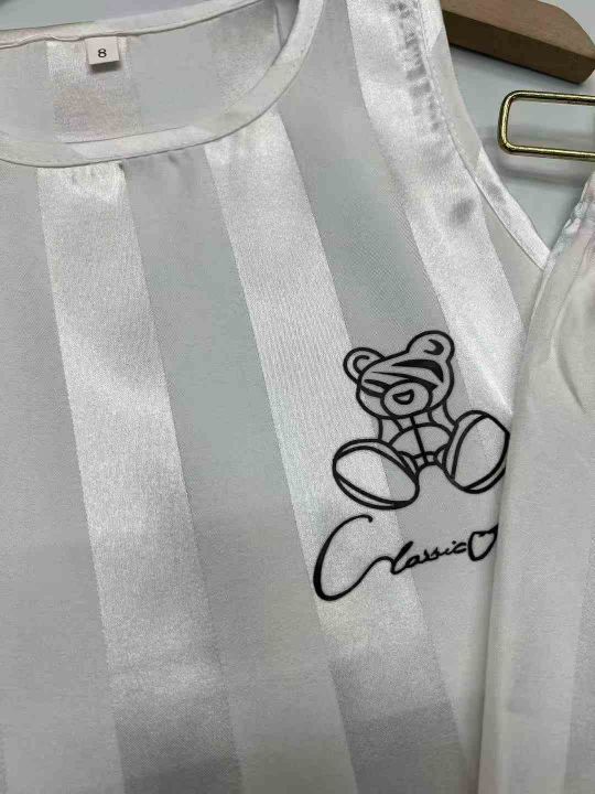 童装家居服套装,仿真丝面料,面料柔软透气凉爽,数量1765套,黑白两色,8-24码(3-13岁)独立包装吊牌,分货➕1元,模特图供参考大概款式,实物是童装!。 货号:1323