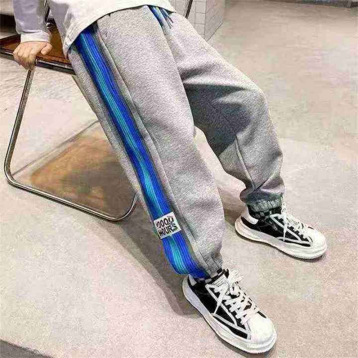 男童裤子春秋潮童炸街童裤中大童拼色大条纹运动裤儿童休闲裤卫裤,独立包装带吊牌,120-160码,40件,8.8元清