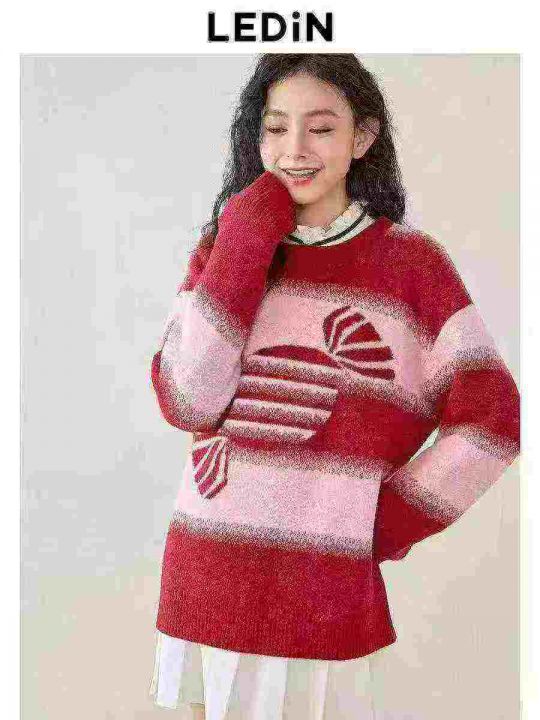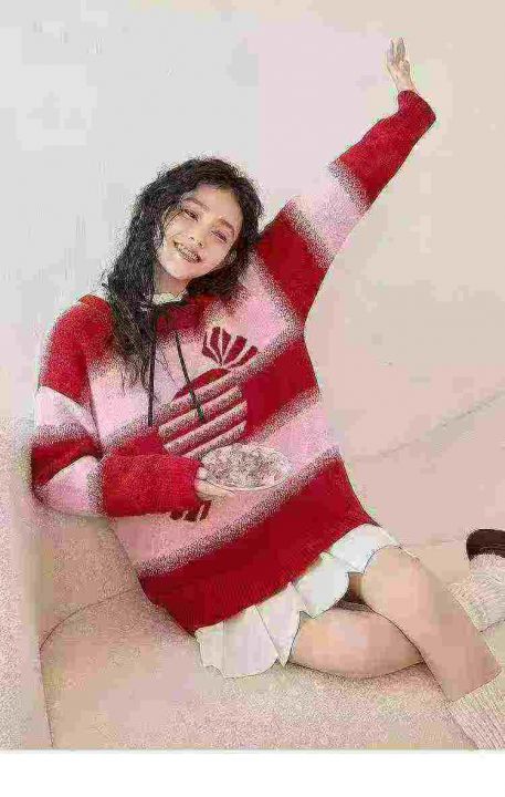 秋冬新款宽松慵懒风乐町草莓奶糖新年红氛围感包芯纱提花钻进套头毛衣,独立包装,均码面料软糯厚实,300件,全清9.9元超低价秒杀!分货加一!。 货号:24862