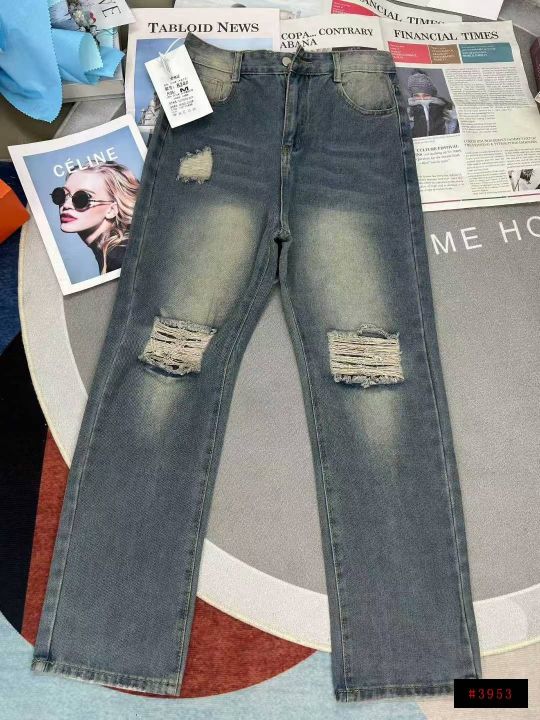美式街头水洗破洞男士宽松阔腿牛仔裤,单款单色,独立...