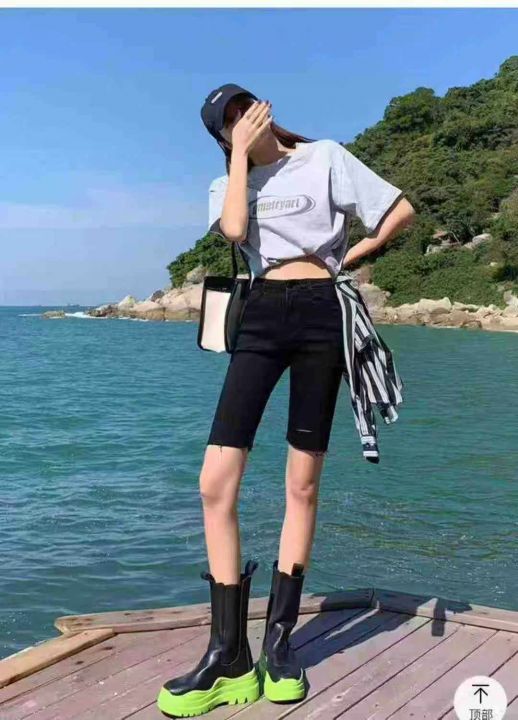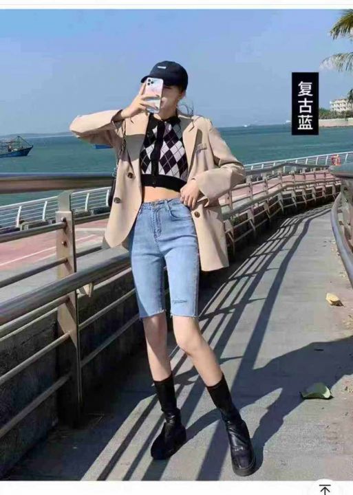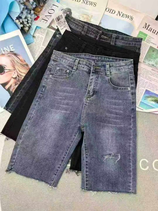 高腰弹力五分牛仔裤,整款3个色,数量240条,25-32码...