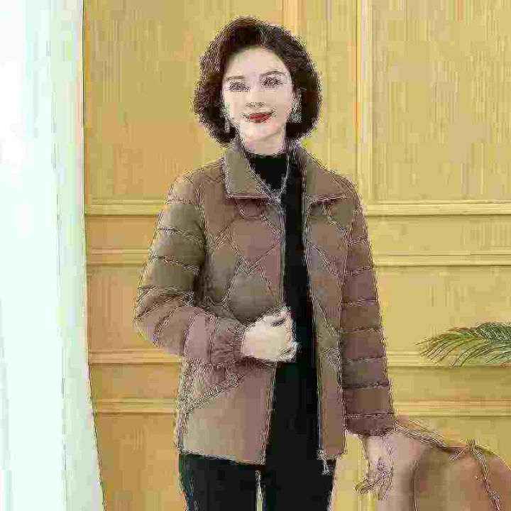 秋冬羽绒棉衣中老年妈妈装女士洋气立领时尚轻薄棉服(...