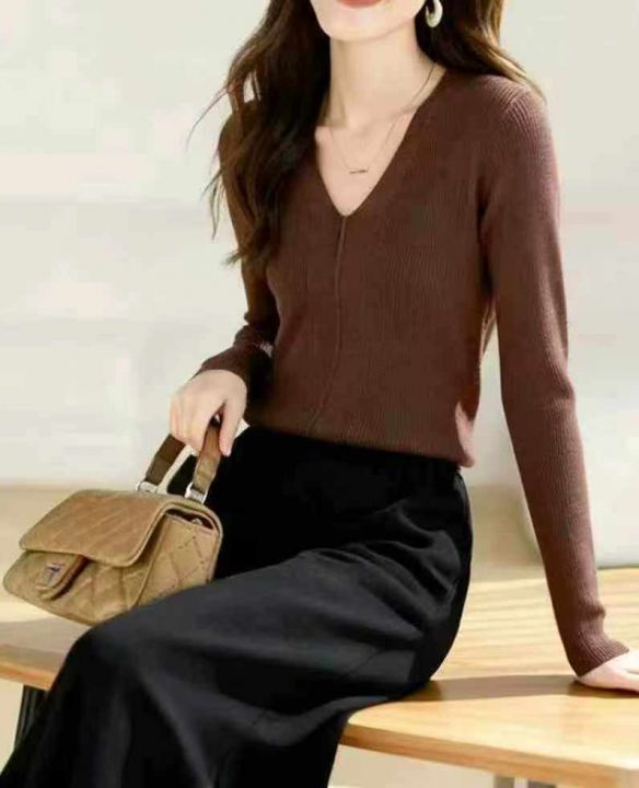 秋冬新款法式V领弹力修身高级显瘦气质打底通勤包芯纱长袖毛衣,独立包装,均码面料软糯舒适弹力大,220件,全清6.9元超低价秒杀!
