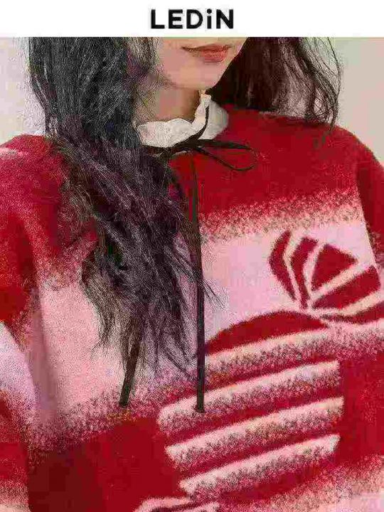 秋冬新款宽松慵懒风乐町草莓奶糖新年红氛围感包芯纱提花钻进套头毛衣,独立包装,均码面料软糯厚实,300件,全清9.9元超低价秒杀!分货加一!