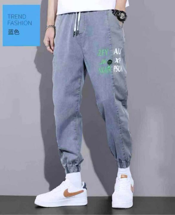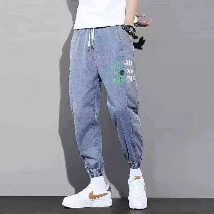秋季新品复古网红男士大码松紧腰牛仔裤,独立包装带吊...