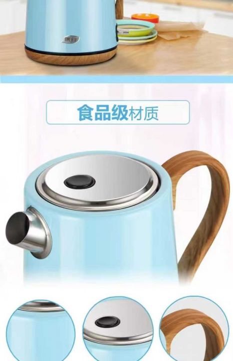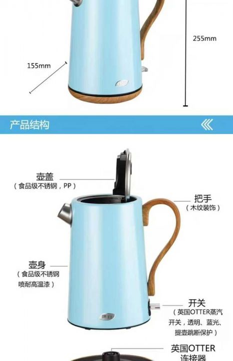 浅蓝色壶身,与家具百搭,木纹手柄+木纹底坐1.7升容...