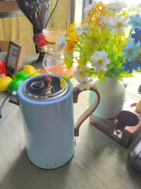 浅蓝色壶身,与家具百搭,木纹手柄+木纹底坐