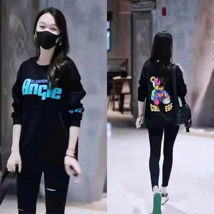 4.5清电商仓回收980件中淑风气质休闲慵懒印花圆领卫衣...
