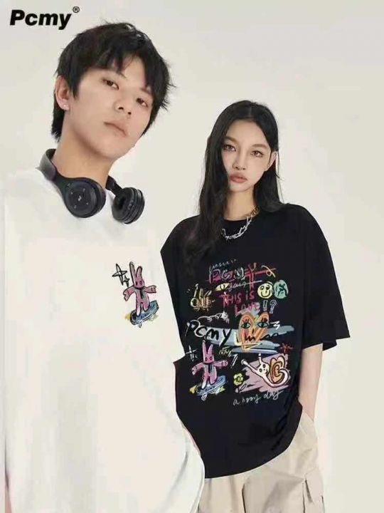 5.9清电商仓回收3394件潮牌男女同款印花宽松短袖T恤,...