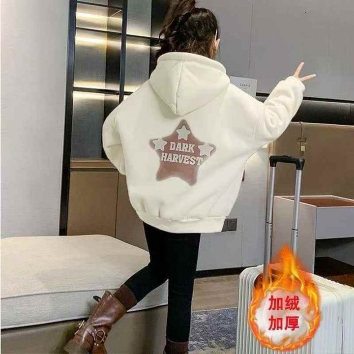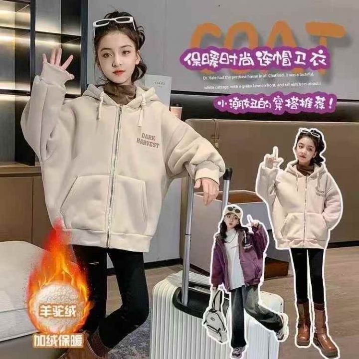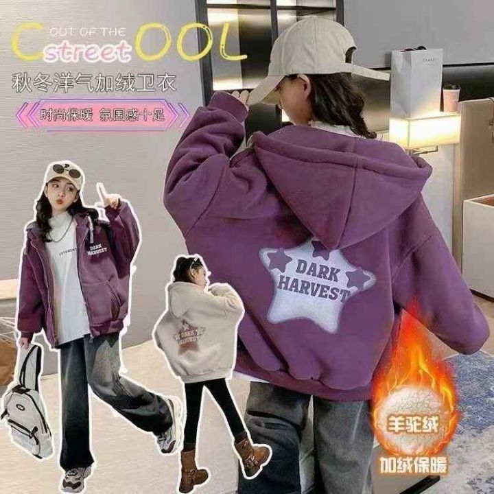 女童加绒外套春秋季薄款时髦洋气中大童装连帽拉链开衫...