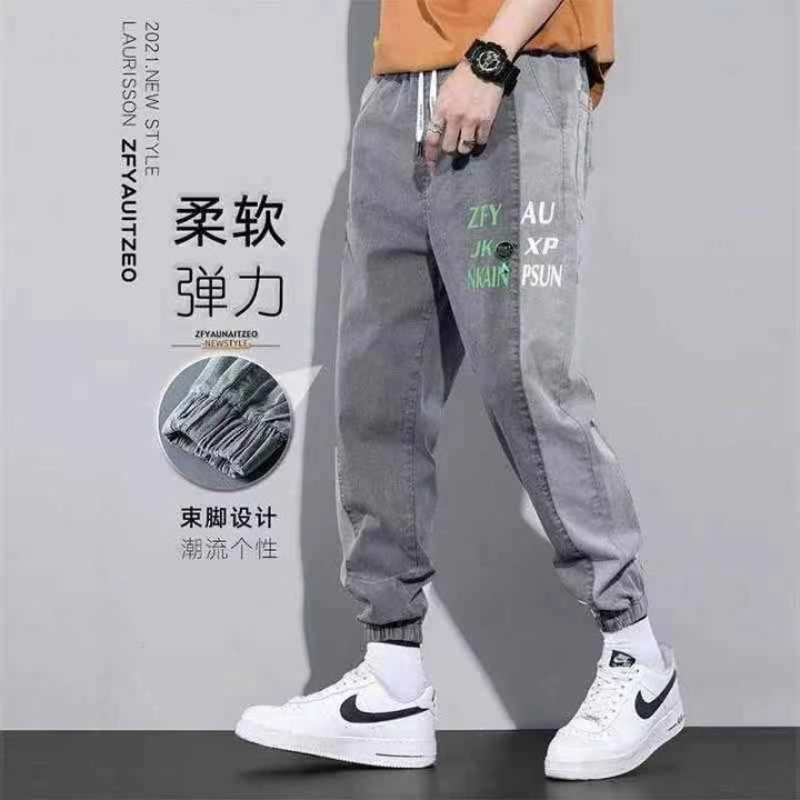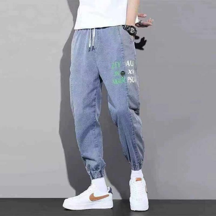秋季新品复古网红男士大码松紧腰牛仔裤,独立包装带吊...