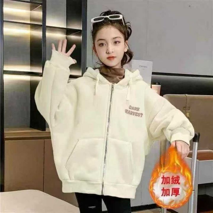 女童加绒外套春秋季薄款时髦洋气中大童装连帽拉链开衫...