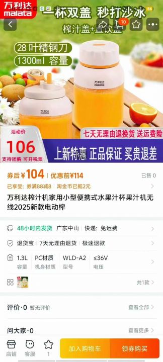 万利达双盖果汁杯 1300大容量 质感无敌 高转速机头 全...