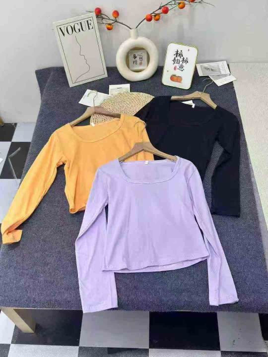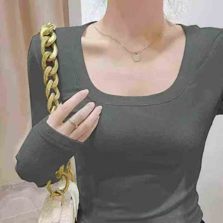 修身纯欲U领纯棉打底衫吊带裙内搭长袖T恤女紧身大领口上衣春秋季,数量245,码数sml,独立包装,全清5.8元。 货号:1323