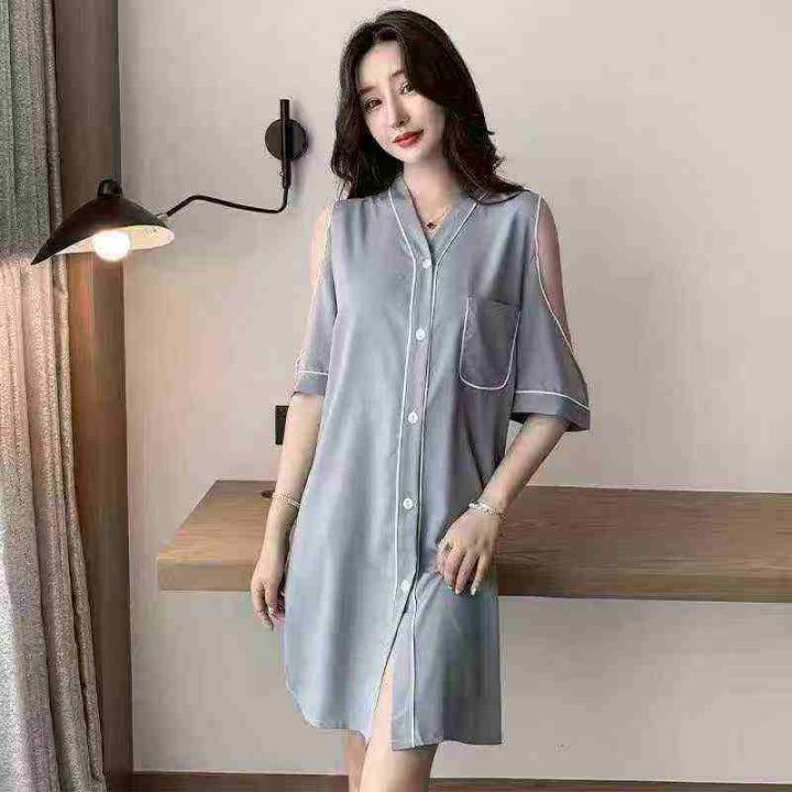 ① 网红冰丝性感露肩韩版宽松家居睡裙!独立包装,整款五色,有部分长袖款,码数M-2XL,数量300件左右,全清6.8元