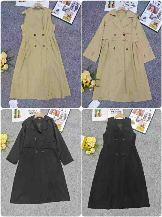 天猫仓回收73套温柔韩系成熟风优雅气质女士风衣连衣裙套装,码数L-4XL。两件套版型质量都很好,裙子有口袋,有独立包装。超低价秒杀!