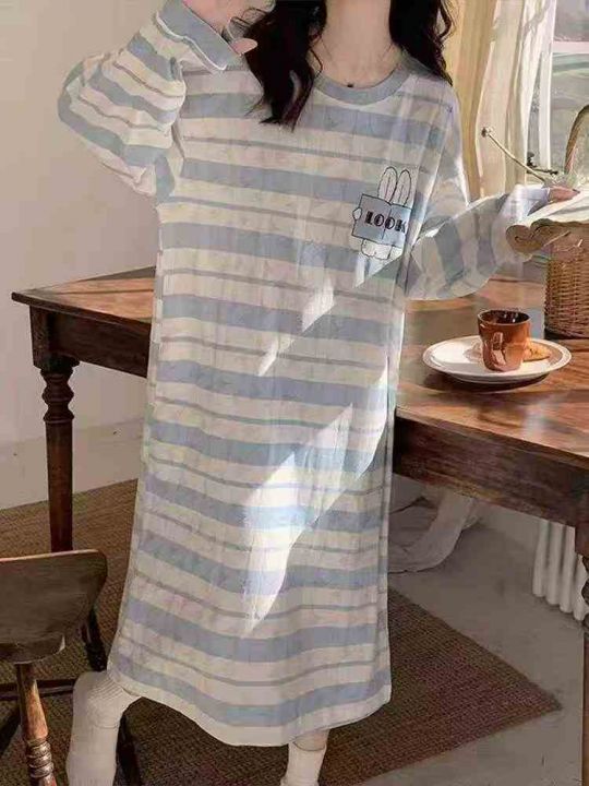 工厂下架时尚条纹女装秋款睡裙家居服 420件左右 具体点数为准 码数L-2XL 货品干净 款式新 面料柔软舒适 质量好 防水袋装 全清7.8