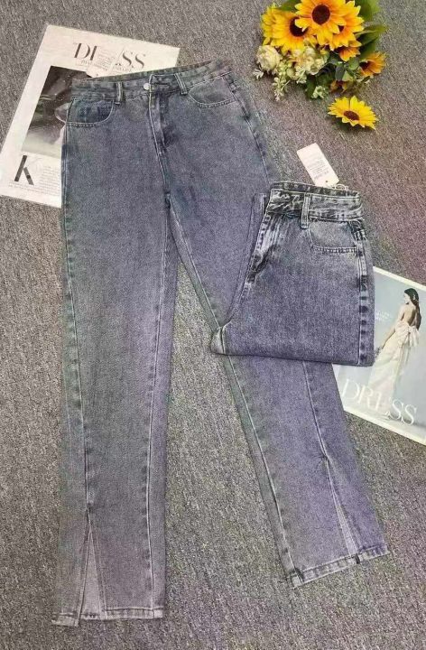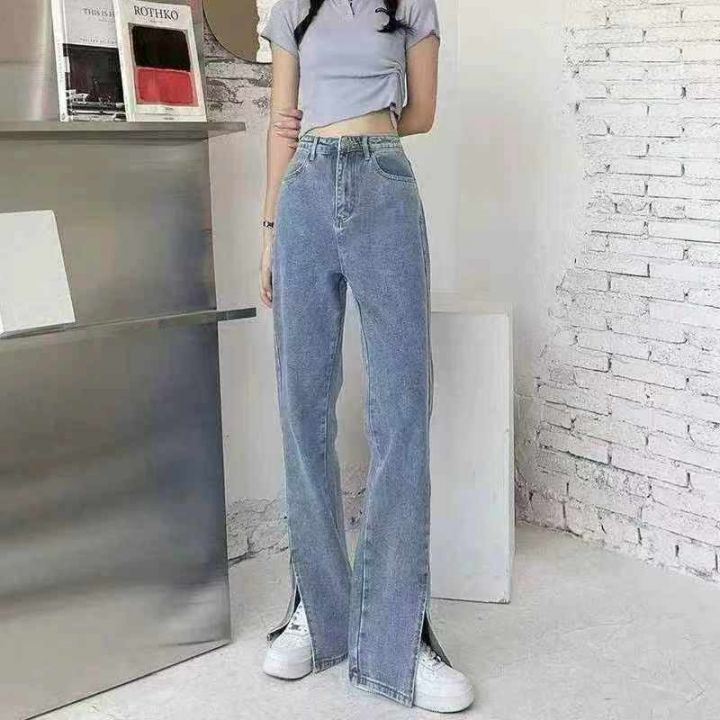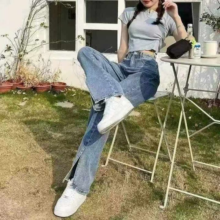 秋季新款洗水棉直筒阔腿开叉设计款牛仔裤,独立包装带...