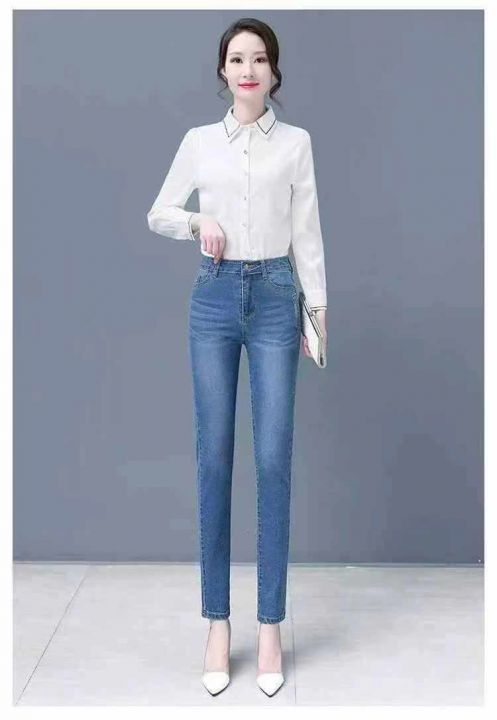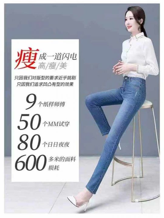 春秋新款高弹力轻熟女装牛仔长裤,独立包装带吊牌,码...