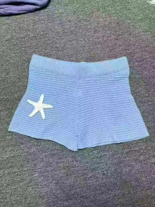 1000件左右美式辣妹撞色星星针织短裤低腰显瘦显臀休闲...