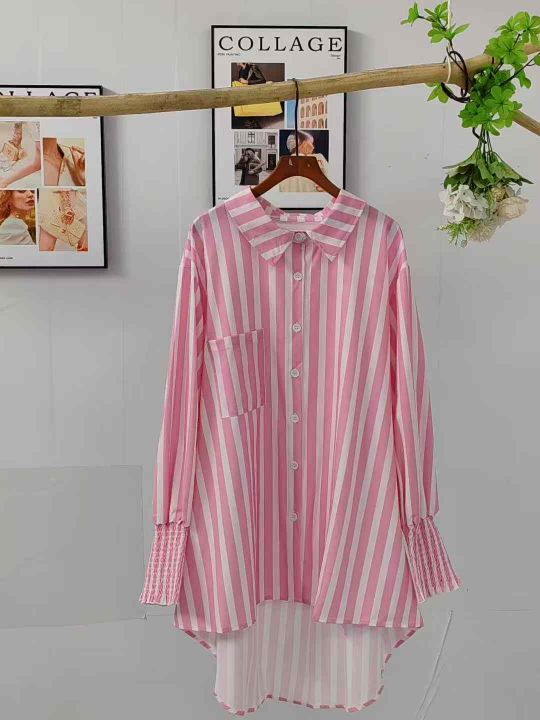 粉色女装条纹衬衫,清6.8码数XL一5XL,数量50件左右,女装衬衫,版型宽松,...