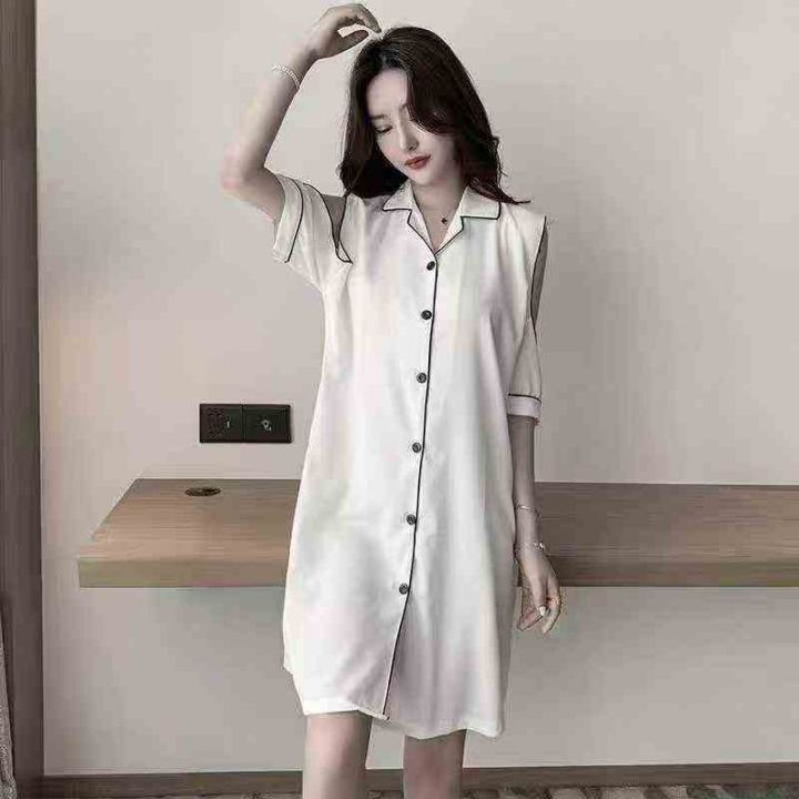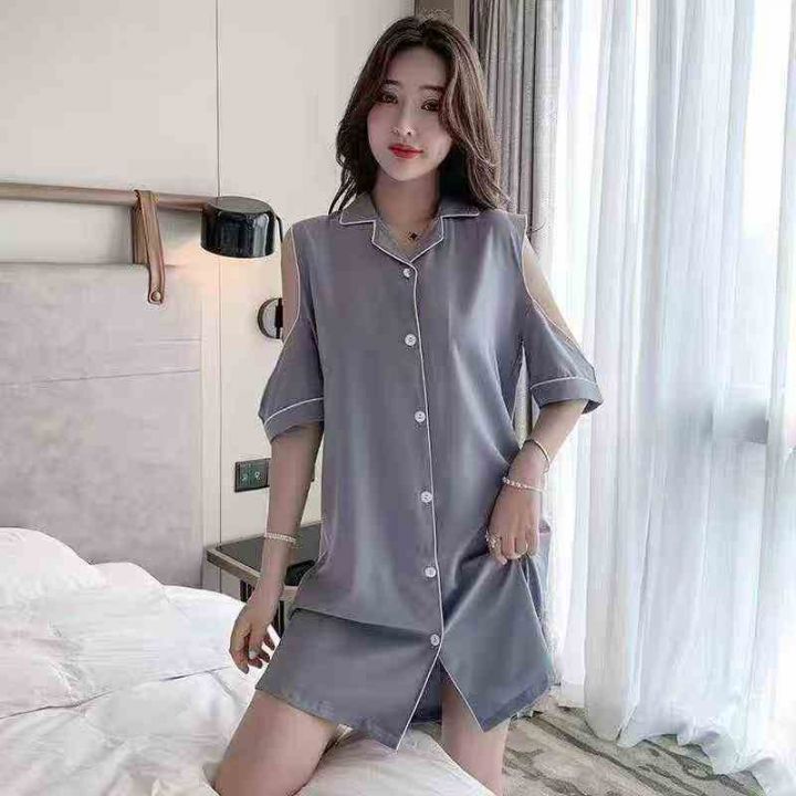 ① 网红冰丝性感露肩韩版宽松家居睡裙!独立包装,整...