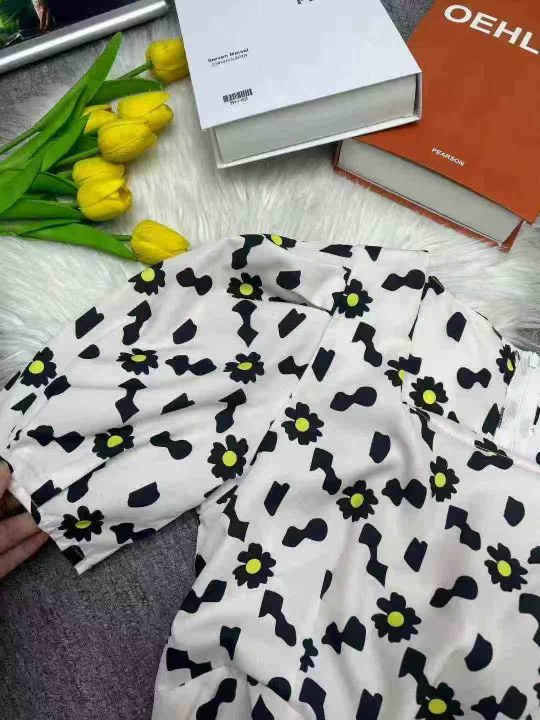 热卖雏菊泡泡袖名媛气质显瘦短袖裙方领设计感连衣裙,独立包装,码数1-5码,数量550条,分货加1,(货号0913#45)