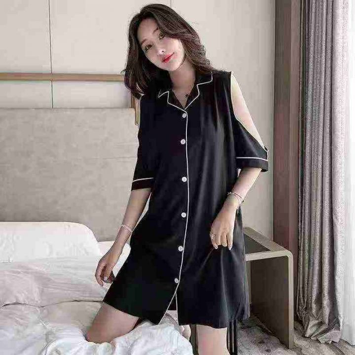 ① 网红冰丝性感露肩韩版宽松家居睡裙!独立包装,整...