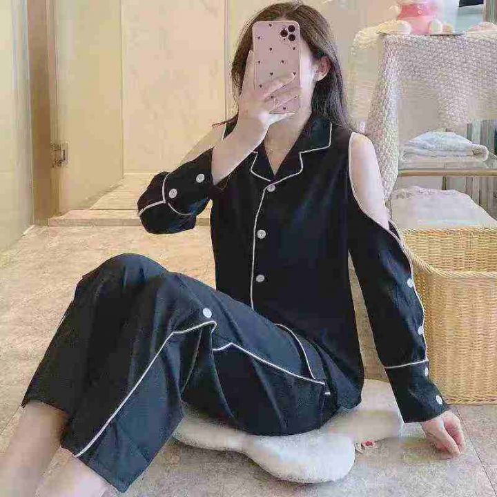 ① 网红爆款冰丝性感长袖长裤睡衣两件套装!整款两色,...