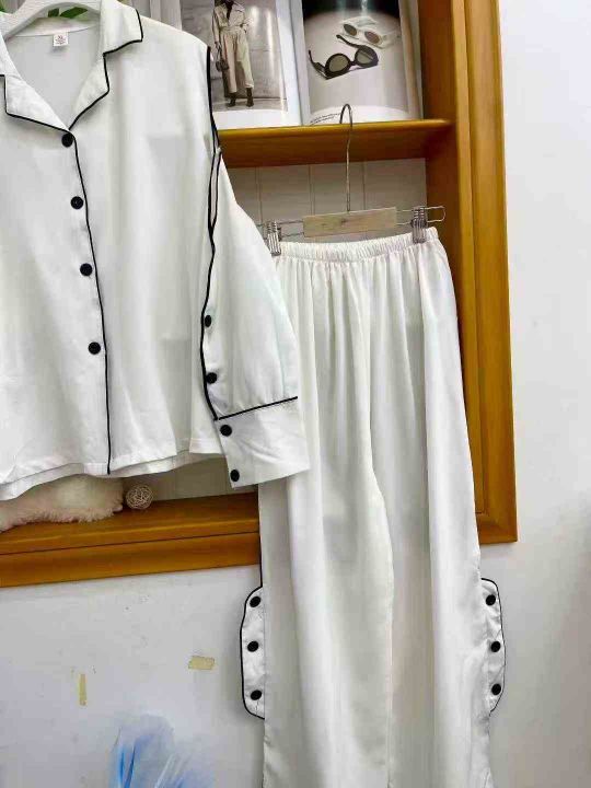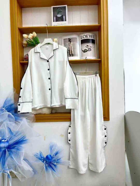 ① 网红爆款冰丝性感长袖长裤睡衣两件套装!整款两色,...