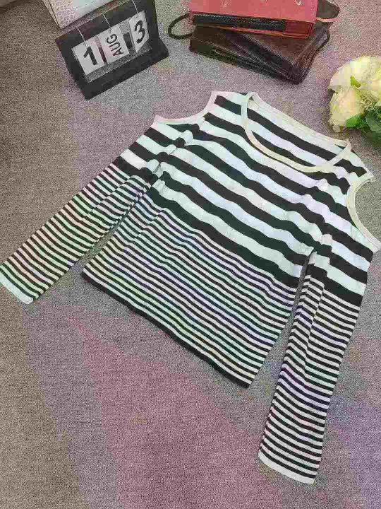 三色入!配色绝绝子~春秋百搭宽松黑白条露肩圆领毛针织衫女显瘦,独立包装,均码,430件左右,清7.5,分➕1