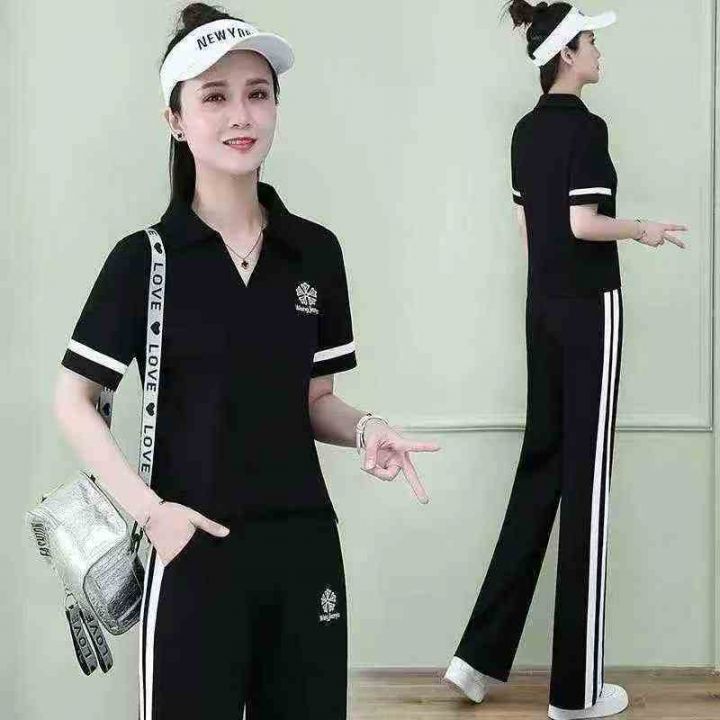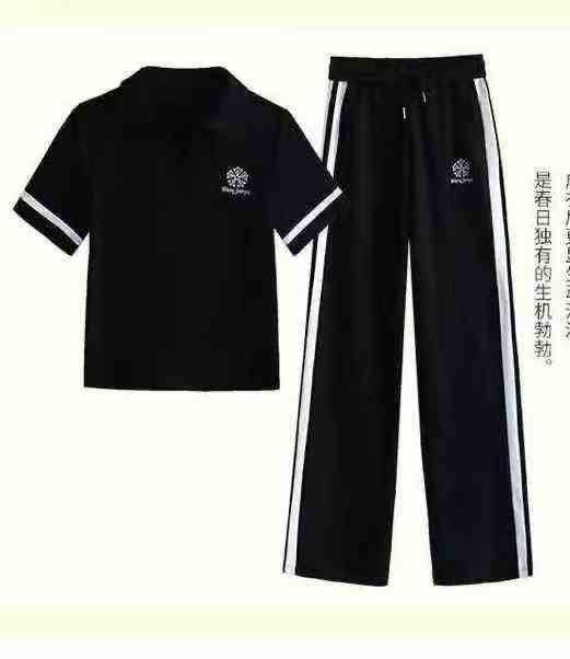 短袖运动服套裤T恤休闲两件套,独立包装,重工刺绣,码数1-6码,数量115套,大货黑色多,货号1126#56