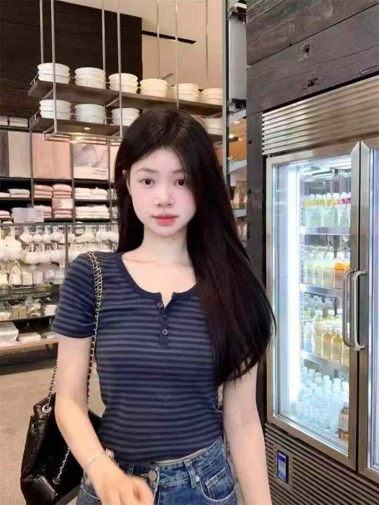 美式正肩条纹棉质短袖282件6.8,面料柔软舒适,高弹力...