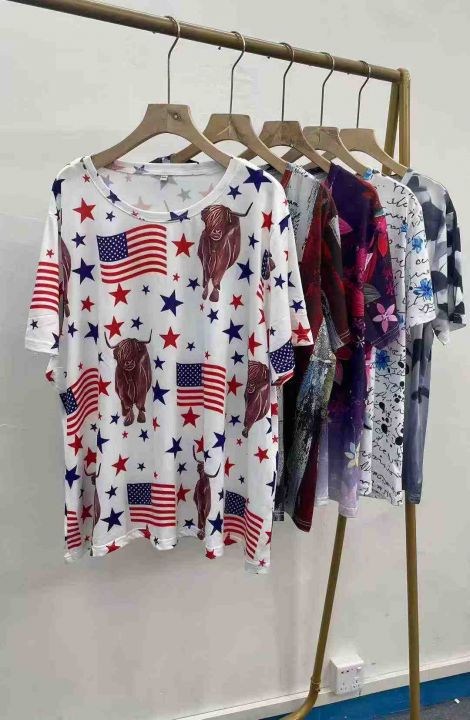 240件宽松休闲印花圆领短袖,面料柔软舒适,高弹力。1XL一4XL,独立包装.全清4.5