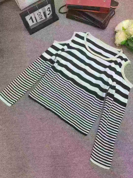 三色入!配色绝绝子~春秋百搭宽松黑白条露肩圆领毛针织衫女显瘦,独立包装,均码,430件左右,清7.5,分➕1。 货号:1303