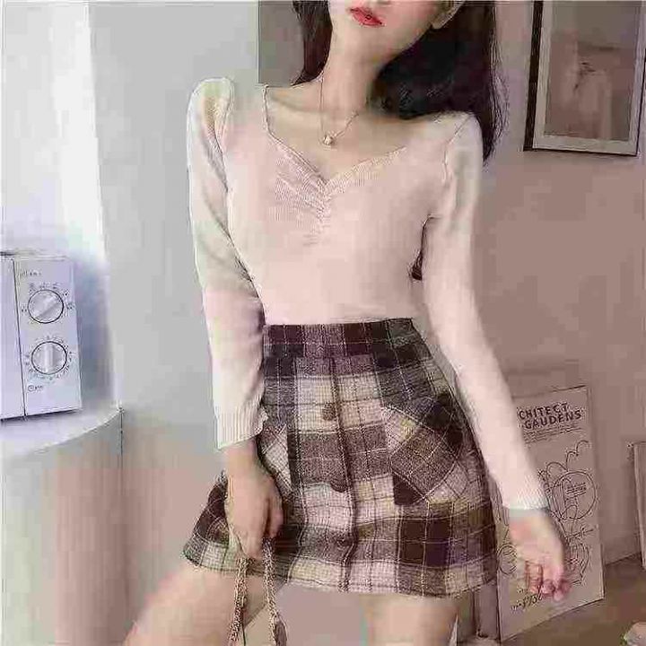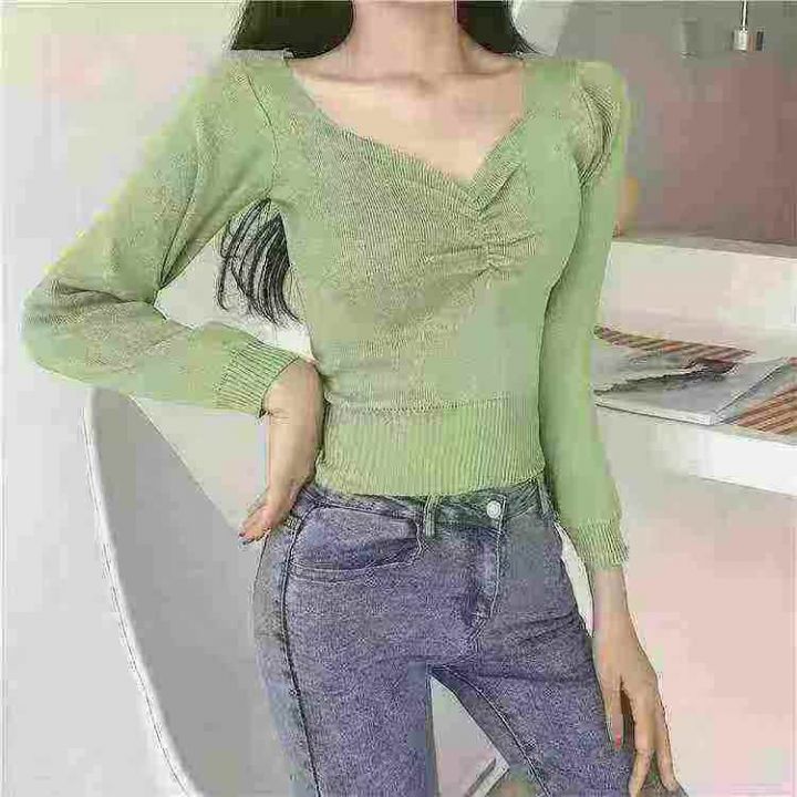 v领针织外穿内搭设计感小众长袖针织毛衣打底衫,独立包装,六个颜色,均码,2000件左右,清5.99元,分货加5毛。 货号:1303