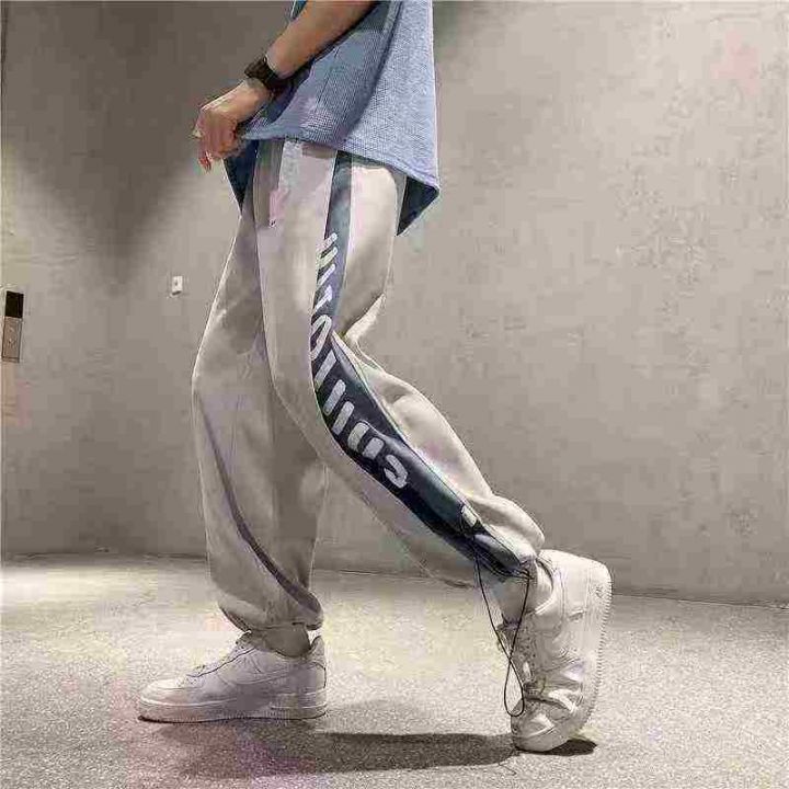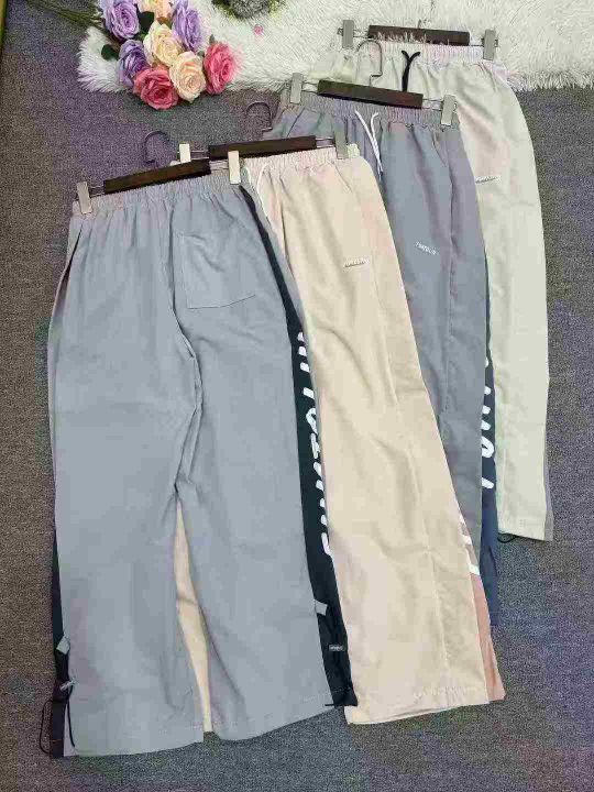 523条,港风休闲裤女2025夏季新款宽松阔腿裤薄款抽绳束脚拼接学生运动裤,独立包装,码数S-3XL,全清7.8元,分货➕0.5